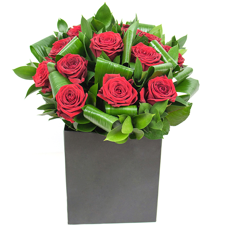 Indulge in elegance with our Charming Red Rose & Foliage Masterpiece. This carefully crafted bouquet brings together vibrant red roses, sophisticated aspidistra leaves, and refined ruscus, each chosen for exceptional quality and freshness.